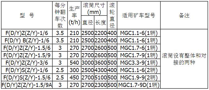 這是一種用于煤礦窄軌固定箱式礦車卸載的設備。按一次翻卸車數(shù)分為單車和雙車式;按列車狀態(tài)分為摘鉤式和不摘鉤式;按回轉方向的不同,分為左側式和右側式;按動力裝置不同分為電動式和液壓式。